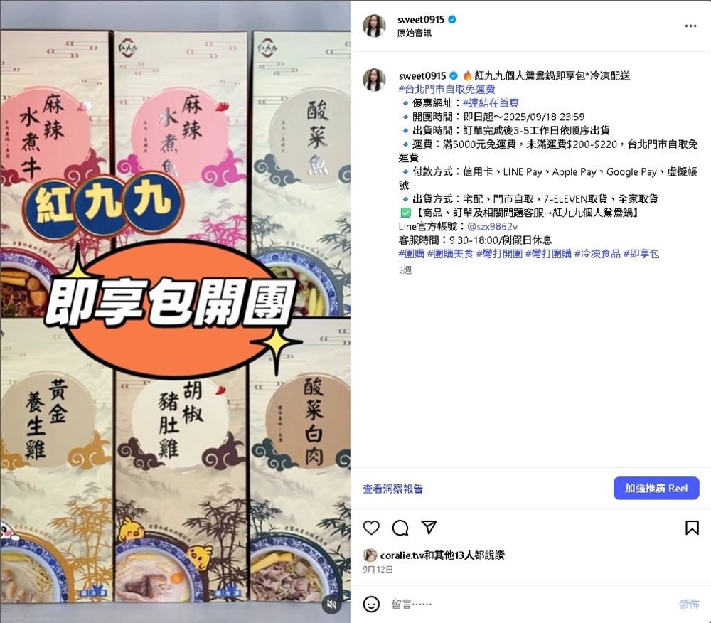 協助品牌客戶→台北火鍋品牌紅九九*冷凍即享包